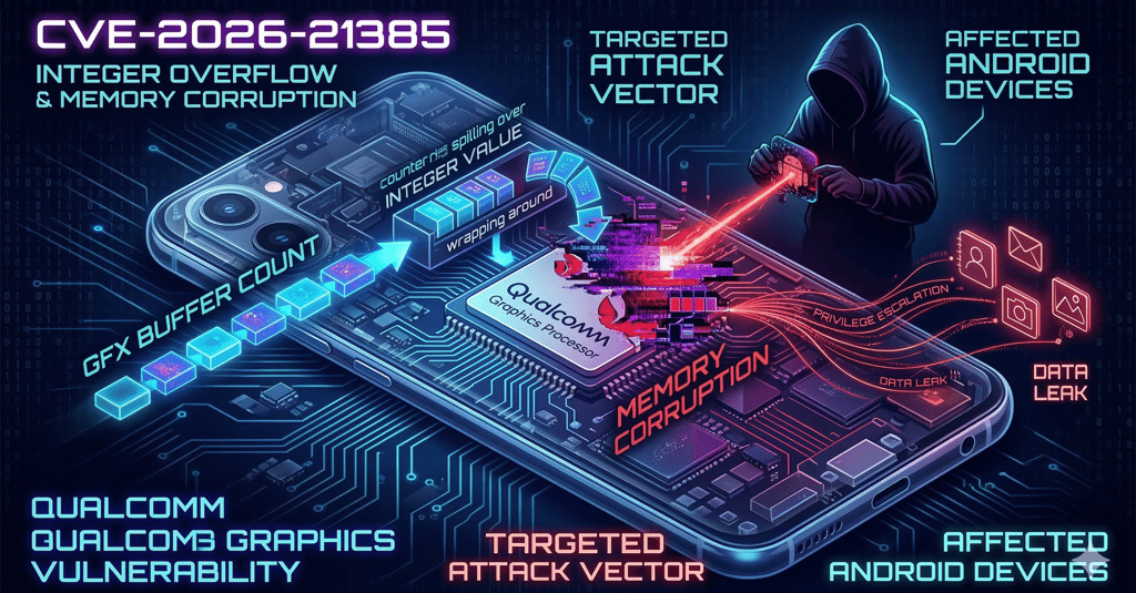 CVE-2026-21385 is a high-severity vulnerability situated within a Qualcomm display and graphics subcomponent. Addressed in Google’s March 2026 Android Security Bulletin, there are confirmed indications that this zero-day has been subject to limited, targeted exploitation in the wild. The vulnerability affects roughly 235 Qualcomm chipsets, expanding its potential attack surface across a vast array of device models and OEM update timelines.